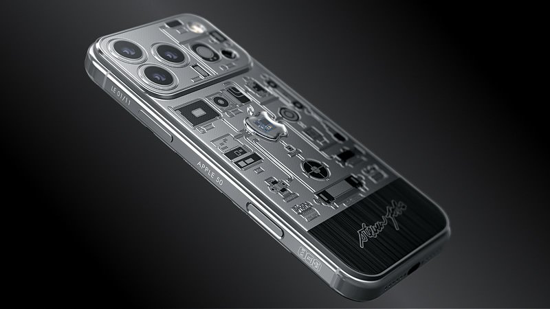 Logo Apple trong suốt chứa bo mạch iPhone 2007 trên Caviar iPhone 17 Pro